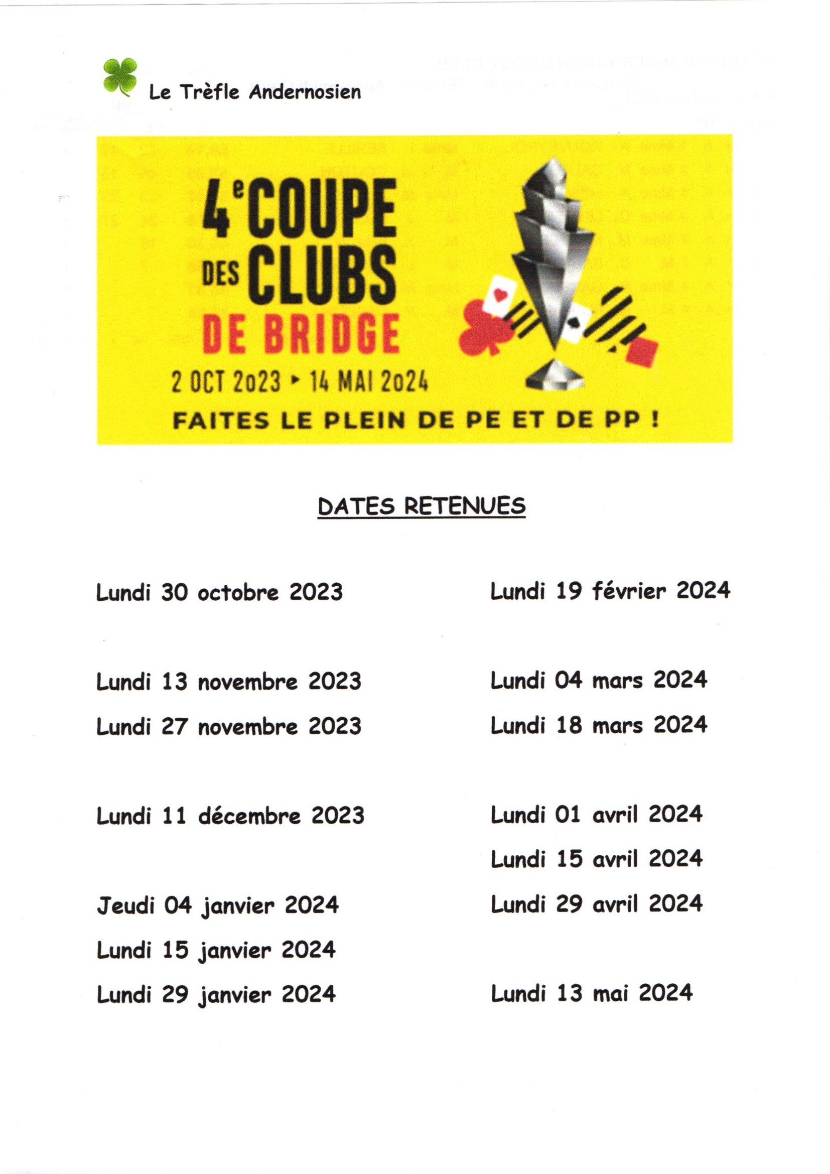 Dates coupe des clubs 23-24